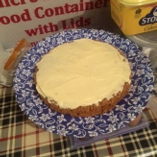 …con (with) white chocolate buttercream frosting.
